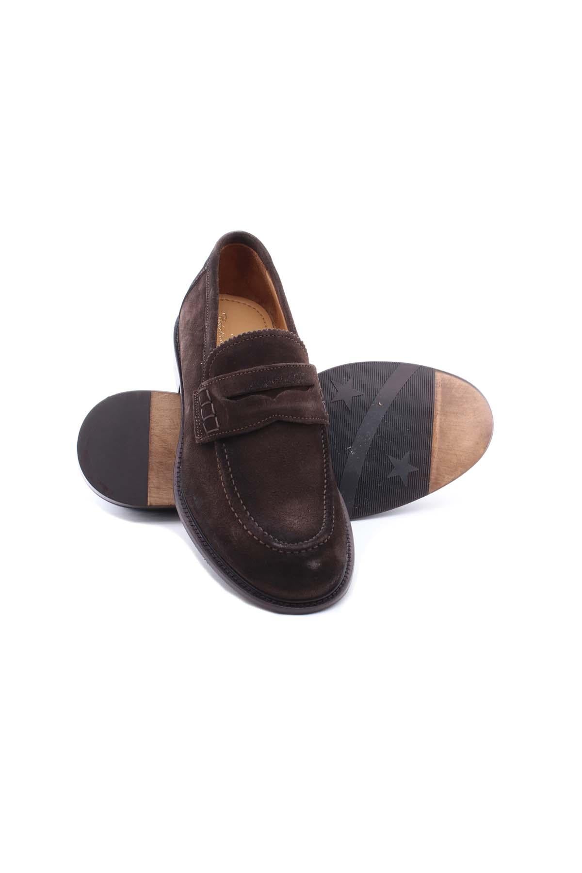 Mocassini uomo in camoscio, suola in vero cuoio con inserto in gomma antiscivolo, interno sfoderato con suoletta ammortizzante, tacco cm.2,5, calzata regolare, 100% vera pelle.