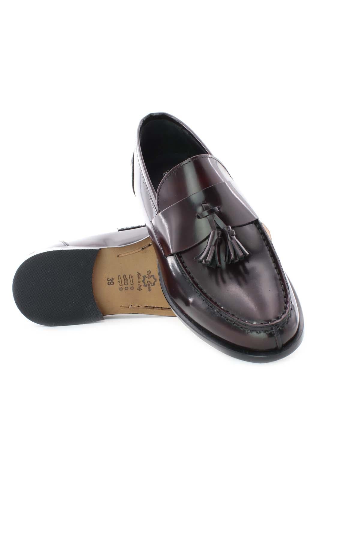 Nascono dall'esperienza di calzolai campani i mocassini con nappine, tomaia in pelle di vitello abrasivato, suola in vero cuoio cucita, interno rivestito con suoletta ammortizzante, calzata regolare si consigli la solita taglia.
