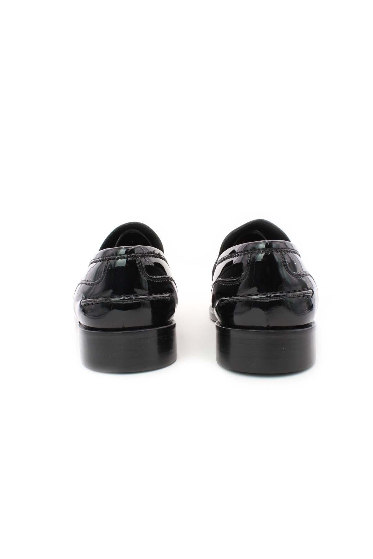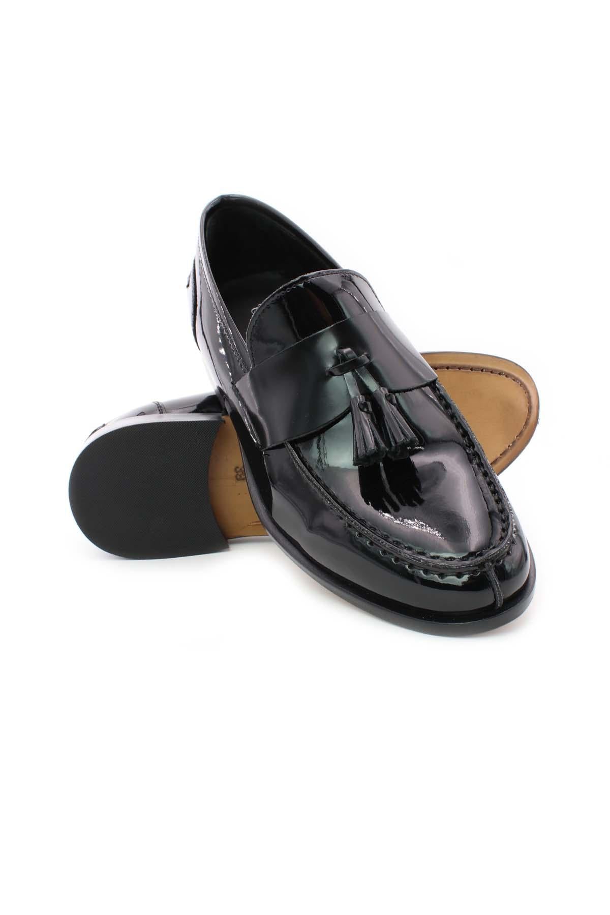 Nascono dall'esperienza di calzolai campani i mocassini in vernice con nappine, suola in vero cuoio cucita, interno rivestito con suoletta ammortizzante, tacco cm 3, calzata regolare, si consigli la taglia solita.