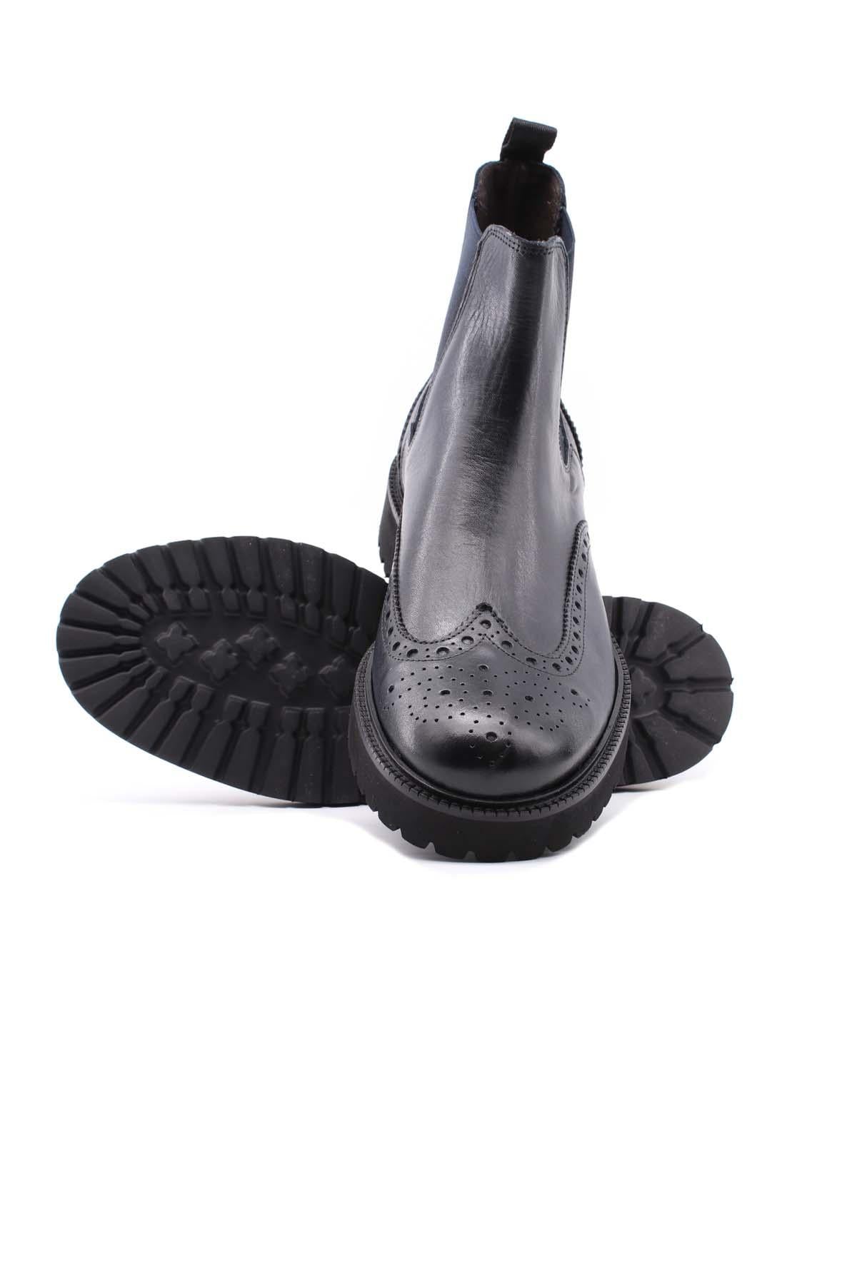 Stivaletto Beatles in pelle lavorata con microfori disegno a coda di rondine, elastici laterali per una perfetta calzata, suola in gomma disegno carro armato, interno foderato in pelle, calzata regolare, 100% pelle.