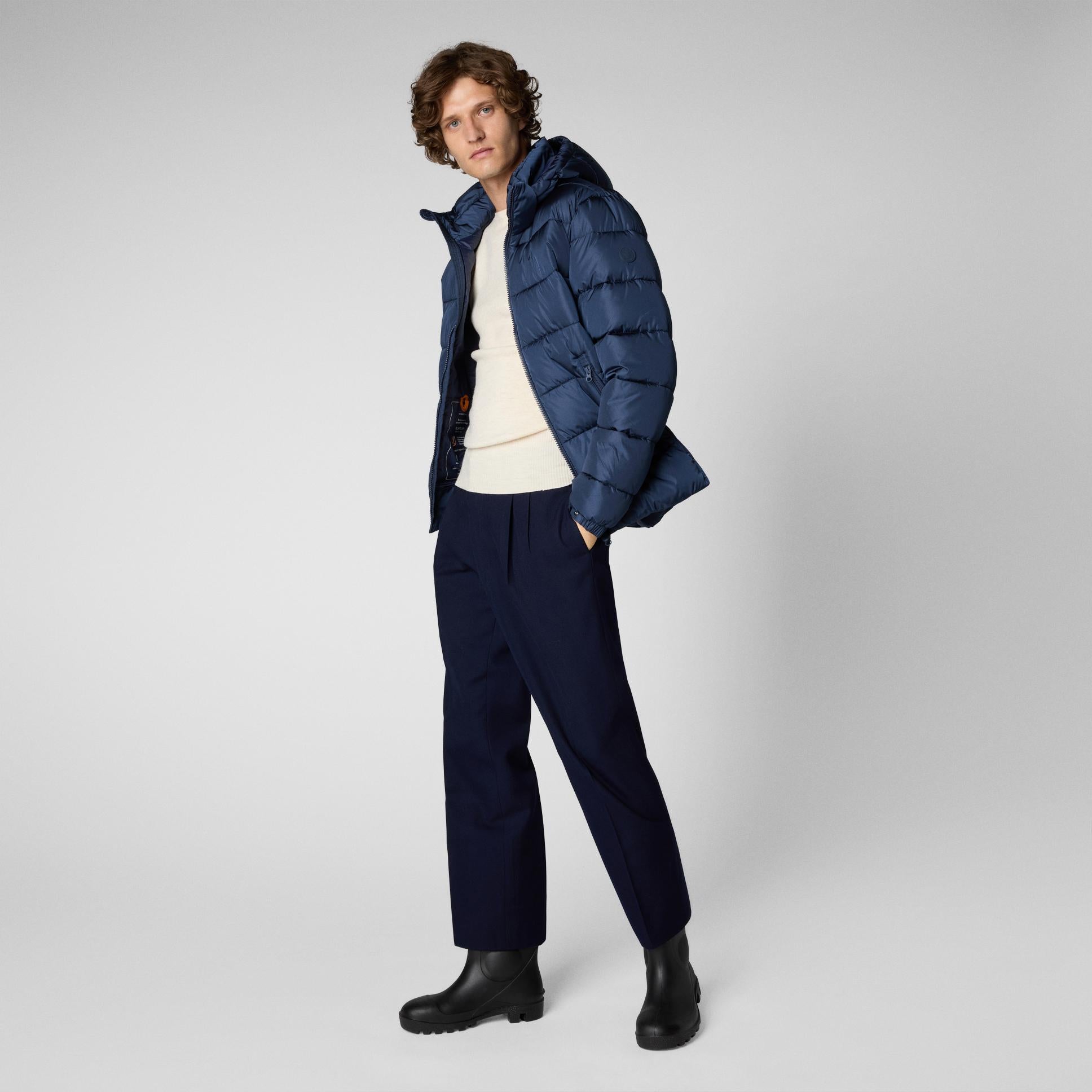 Realizzata con materiali 100% animal free, piumino con cappuccio estraibile, chiusura con zip doppio cursore, tasche anteriori ai fianchi, logo bollino in tinta sul braccio,polsini con elastico, fondo con coulisseelasaticizzata, interno con tasca, sacca per il trasporto in dotazione.