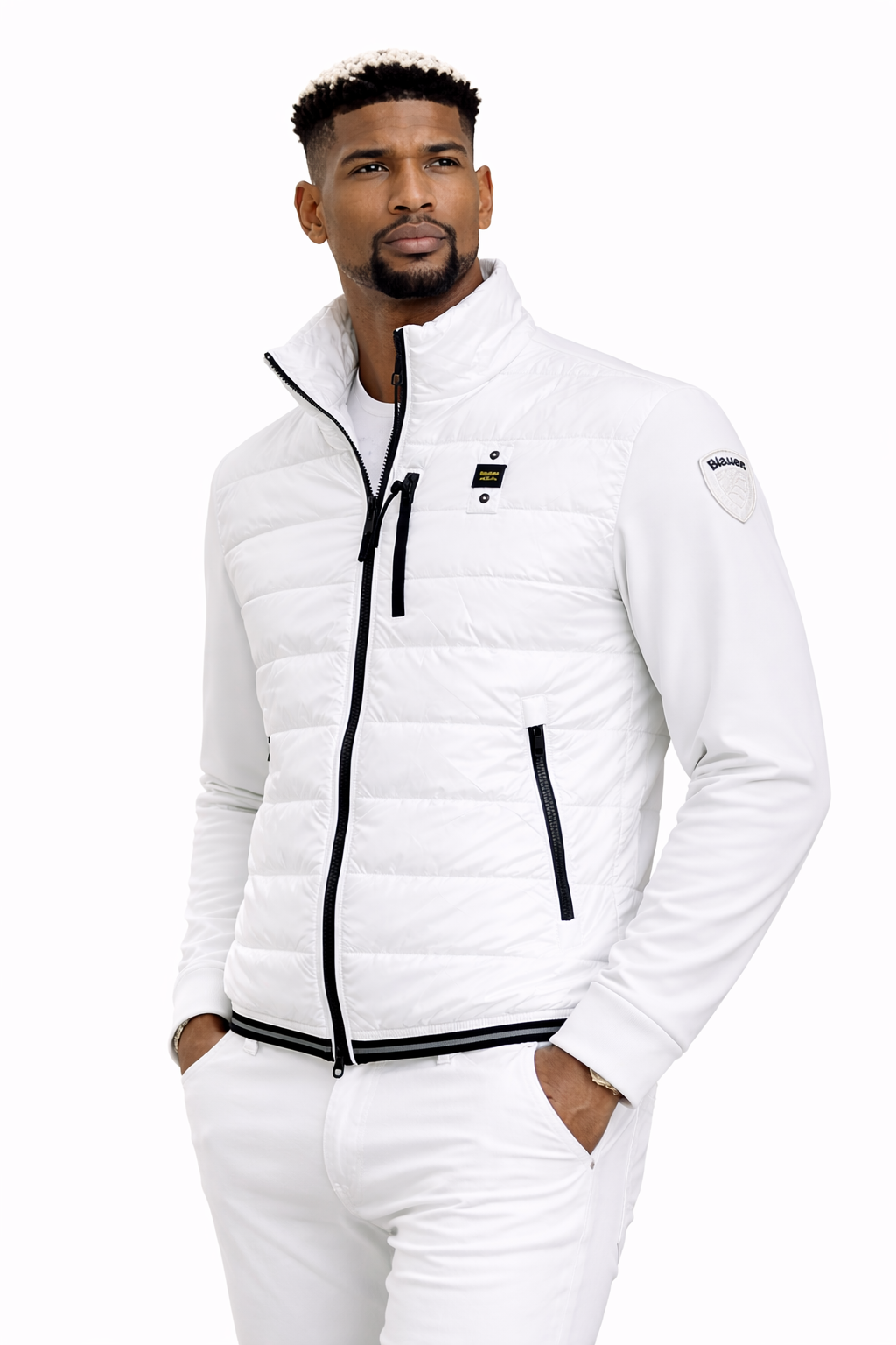 Giubbotto Blauer uomo bitesstuto Hebron, nylon trapuntato e neoprene, chiusura full zip e vestibilità regolare ideale per mezze stagioni.