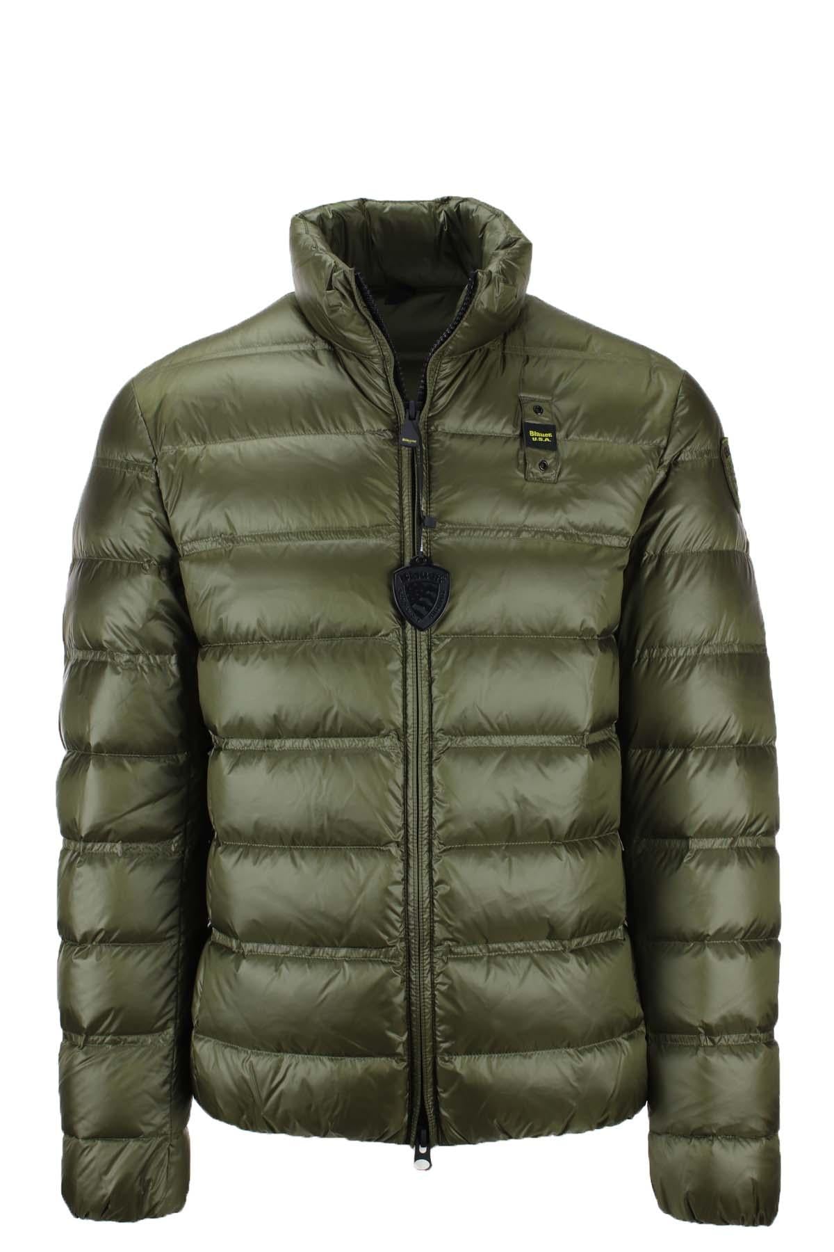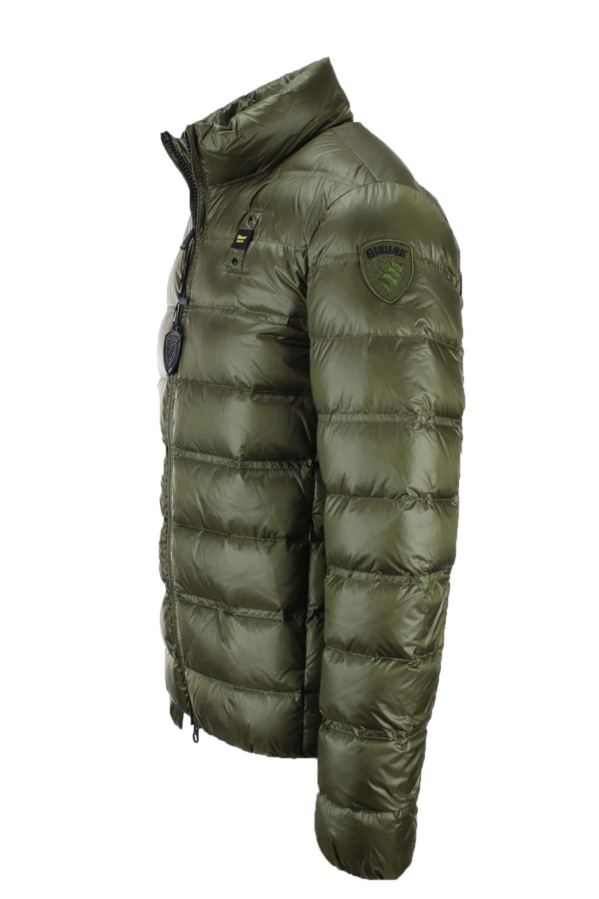 La giacca piumino uomo Blauer con collo alla coreana BELMONT ha una chiusura centrale con zip doppio cusore, tasche anteriori oblique con zip a scomparsa, logo passante Blauer sul petto e patch in tinta sul braccio, elastico interno in vita e nei polsini per una migliore vestibilità, interno con tasche, imbottitura in 90% piuma d'anatra bianca 10% piuma 185gr., tessuto 100% nylon.
