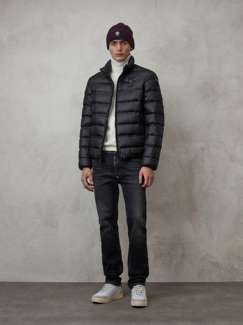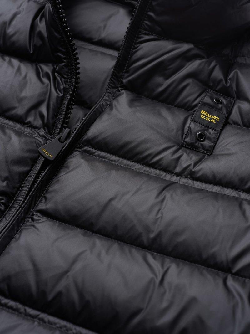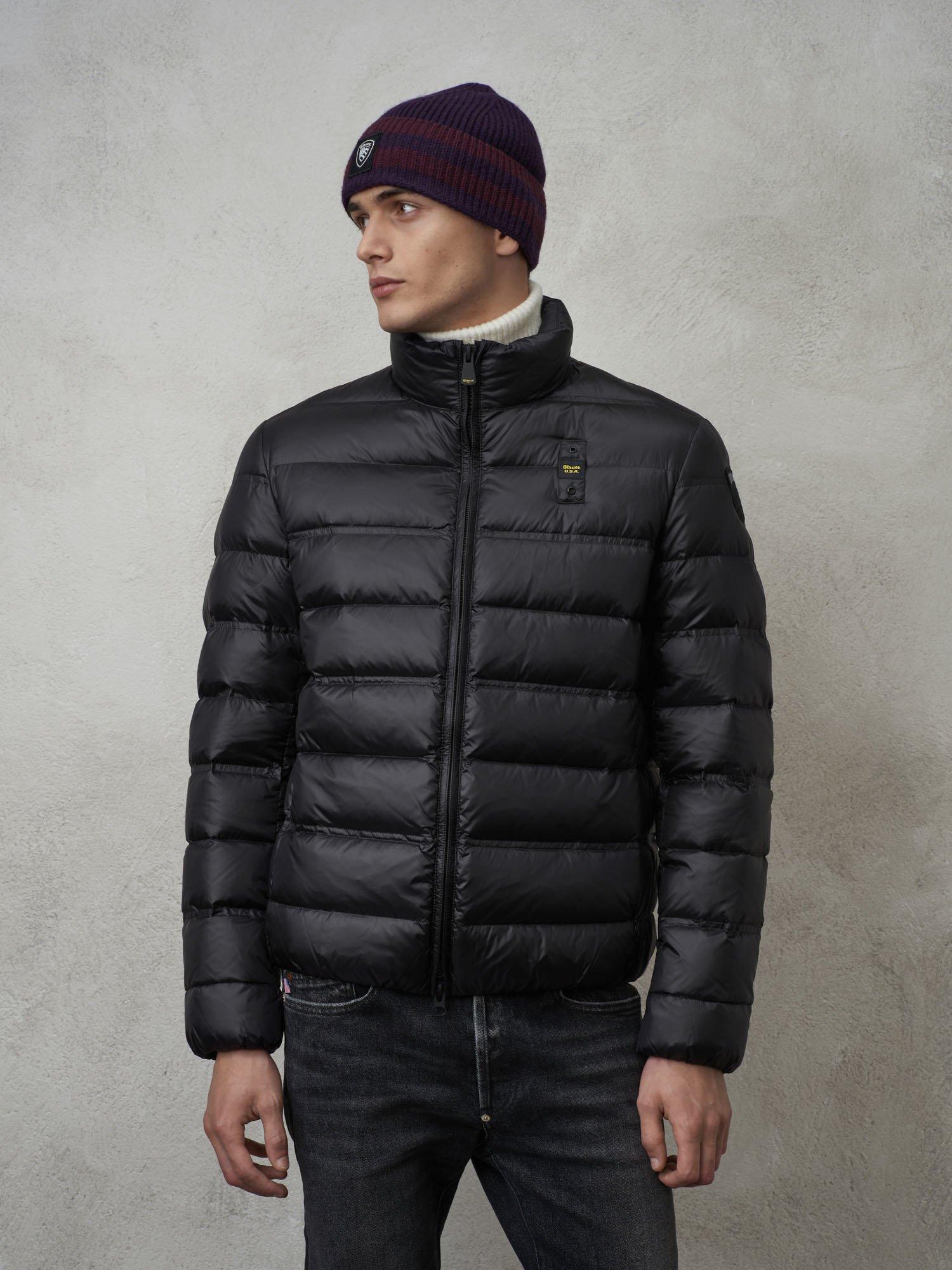 La giacca piumino uomo Blauer con collo alla coreana BELMONT ha una chiusura centrale con zip doppio cusore, tasche anteriori oblique con zip a scomparsa, logo passante Blauer sul petto e patch in tinta sul braccio, elastico interno in vita e nei polsini per una migliore vestibilità, interno con tasche, imbottitura in 90% piuma d'anatra bianca 10% piuma 185gr., tessuto 100% nylon.