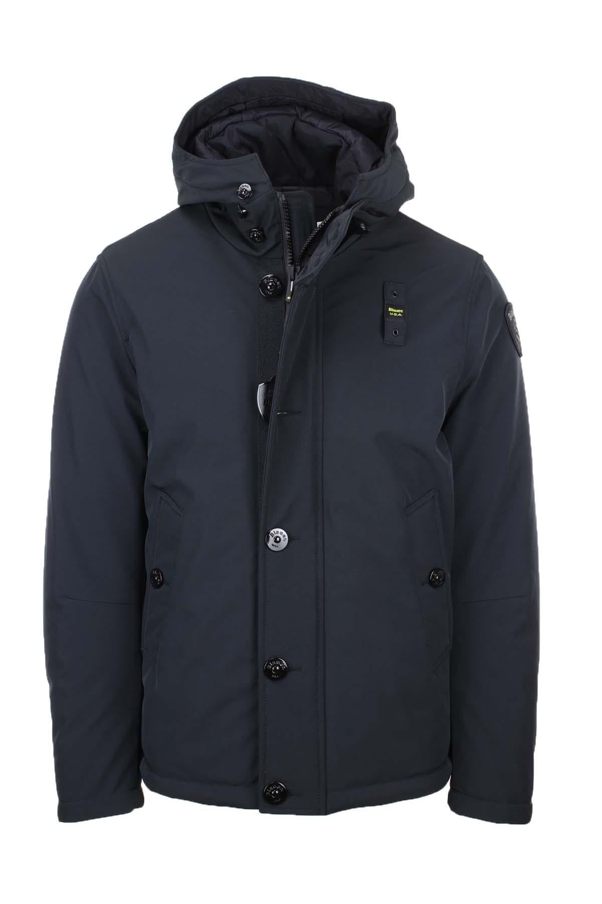 Giubbotto con cappuccio fisso Blauer, realizzato in neoprene idrorepellente, chiusura centrale con zip nascosta da pattina e bottoni, chiusura sul collo con passante e bottoni per una migliore protezione dal freddo, tasche ai fianchi con bottone, passante e patch con logo Blauer, fondo vita con coulisse regolabile, interno con imbottitura ecologica e impunturato a onde per il massimo della protezione dal freddo, tasche interne con velcro, vestibilità regolare.