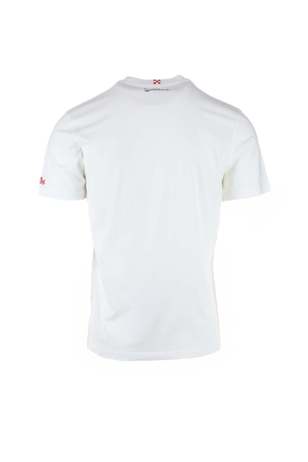T-shirt mezza manica uomo stampa Simpson Troublemaker Limited Edition, ricamo MC2 Saint Bart nella manica, realizzata in jersey di cotone, vestibilità regolare, 100% cotone.