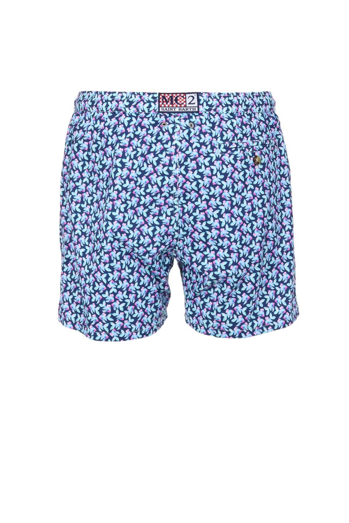 Costume MC2 Saint Barth da uomo fantasia realizzato in microfibra leggera ad asciugatura rapida. Il modello presenta slip interno ergonomico antibatterico e anallergico, elastico in vita con laccio coulisse, tasche a filo ai fianchi e tasca posteriore con bottone. Taschino interno e logo Saint Barth applicato, viene consegnato con linguetta personalizzata MC2 Saint Barth per il riconoscimento bagagli.Vestibilità regolare.