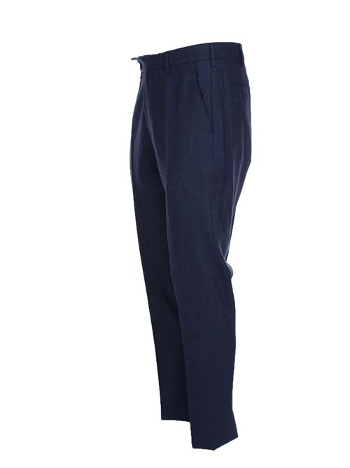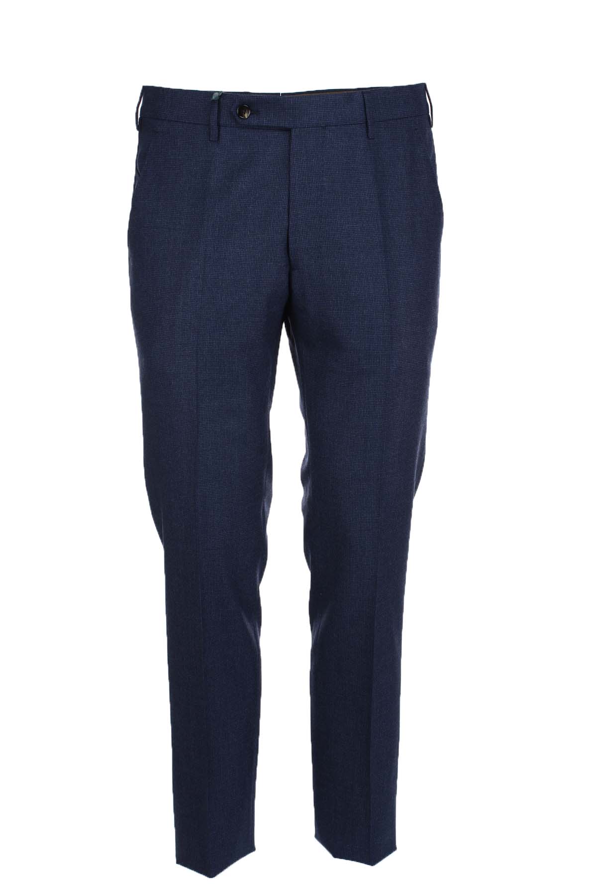 Pantalone uomo modello tasche america, realizzato in lana microfantasia, chiusura con zip e bottone, doppia tasca posteriore, vestibilità regolare, fondo 17cm, 98% la, 2% elastan.