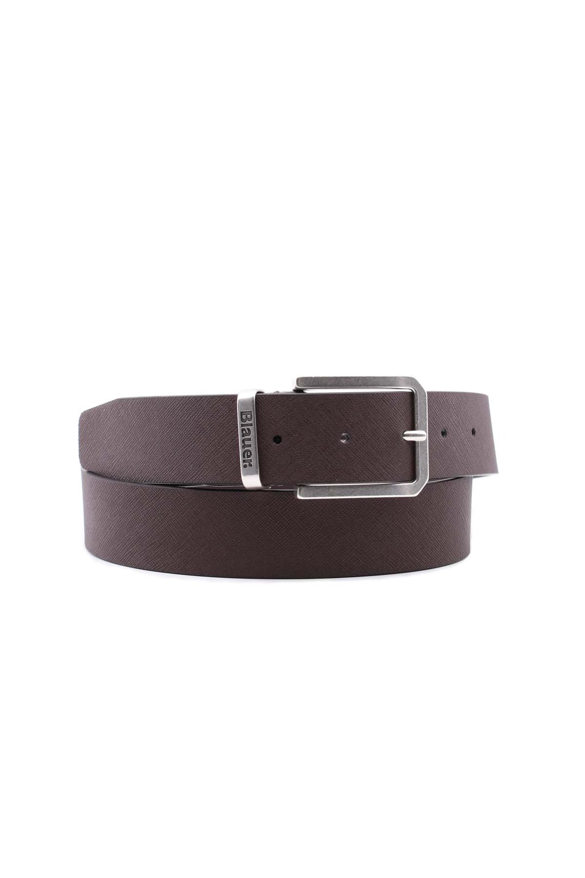 Cintura uomo firmata Blauer, realizzata in pelle saffiano, fibbia argentata con passante logato, altezza cm.3,3, abbinabile a un look classico e sportivo.