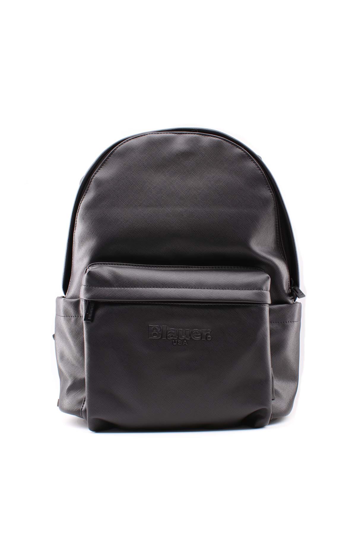 Zaino Blauer realizzato in ecopelle effetto saffiano con logo in sovrimpressione, chiusura con zip a scomparsa, tasche esterne, bretelle regolabili imbottite per un miglior confort, manico per trasporto a mano, interno imbottito con tasca per mini pc o tablet, tasca con zip e soffietto porta penne, dimensioni cm. 34 x 36 x 15.