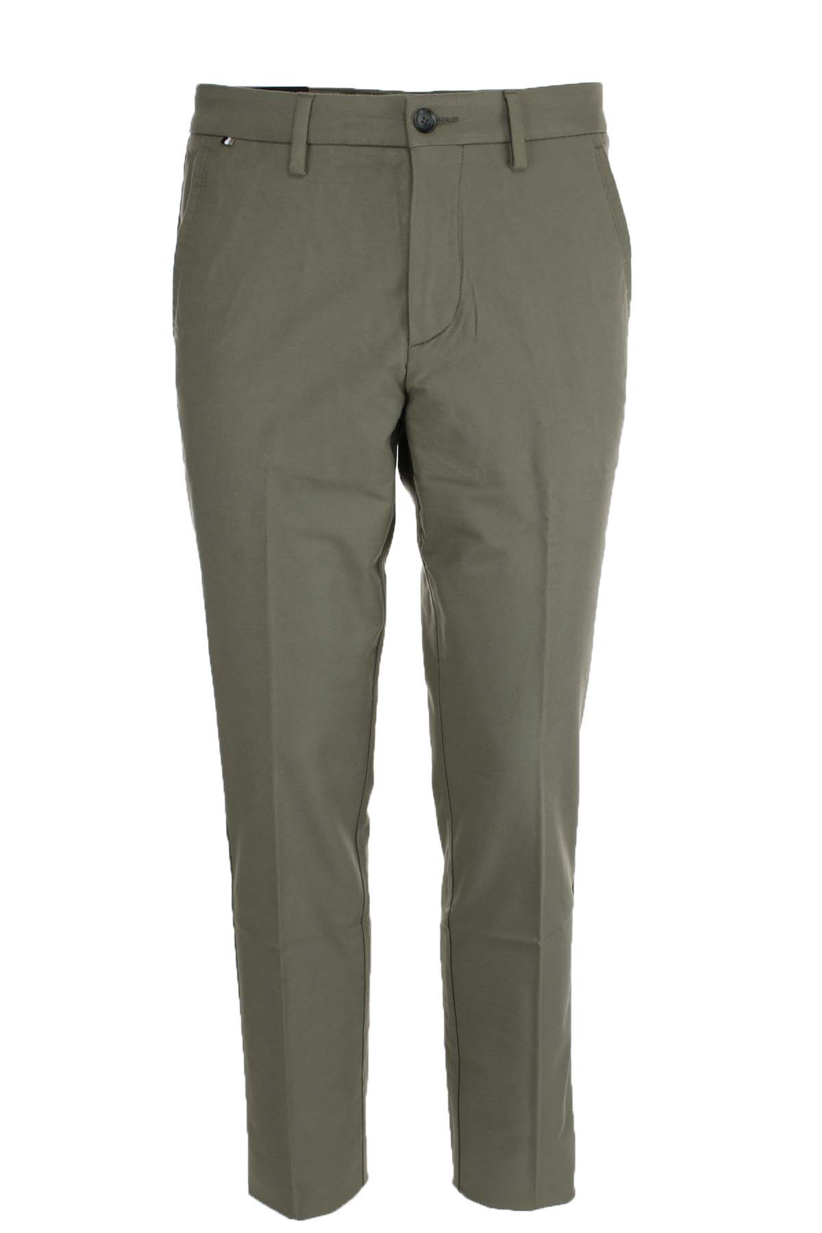 Pantalone Boss uomo, realizzato in tessuto armaturato diagonale stretch con tasche america, doppia tasca posteriore a filo, passanti in vita, chiusura zip e bottone, vestivilità slim fit, 51% cotone, 47% modal, 2% elastan.