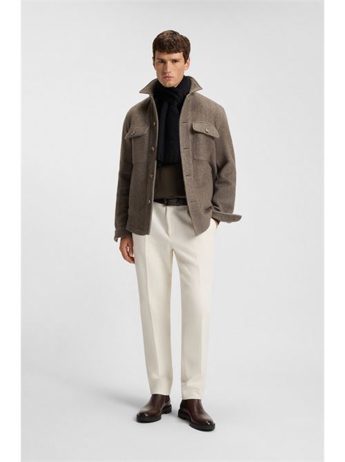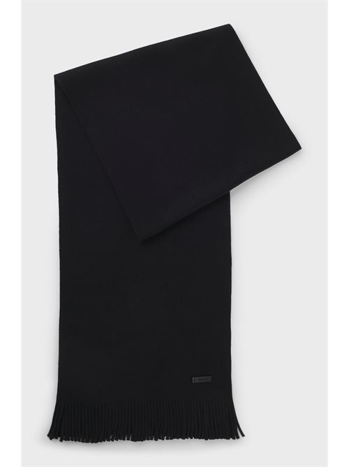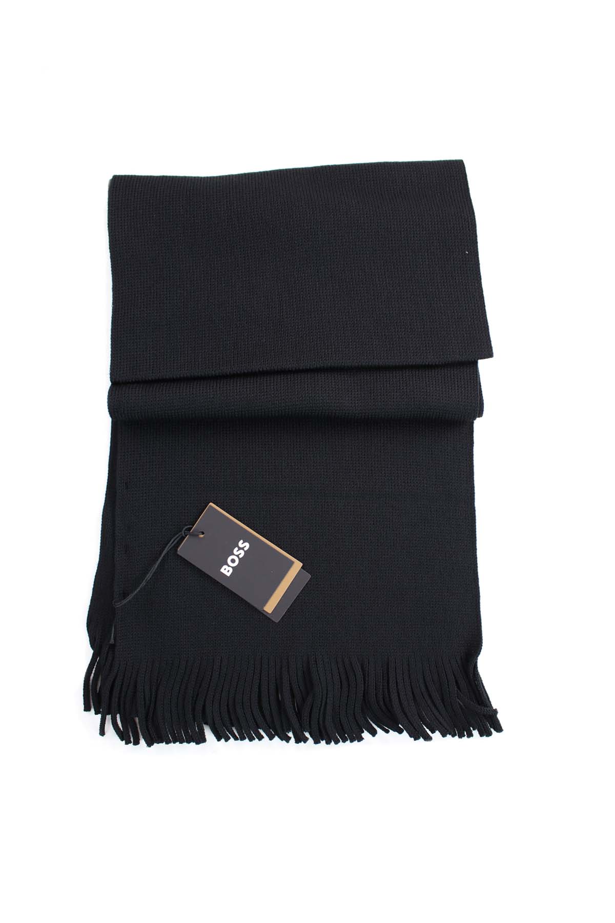 Sciarpa in lana rasata, calda e morbida al tatto, frange in tinta sui bordi, passante con logo BOSS, lunghezza cm. 170 x 25, Pura Lana.