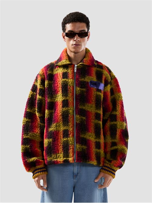 Giacca in tessuto ricciolo multicolor a disegni geometrici, chiusura full zip, polsini e fondo elasticizzati, logo GCDS sul petto, tasche ai fianchi, vestibilità oversize, 70% lana, 30% poliestere.
