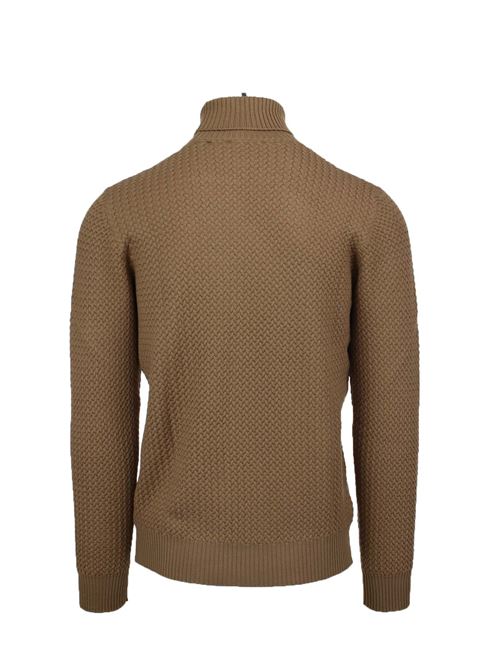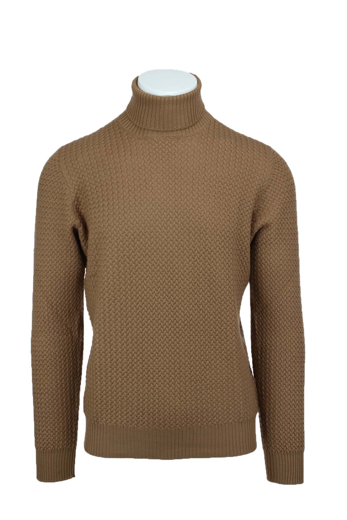 Maglia dolcevita uomo Gransasso, lavorazione a disegno microtrecce a rilievo, polsini e fondo elasticizzati, vestibilità slim fit, 100% lana merinos extrafine, Made in Italy.