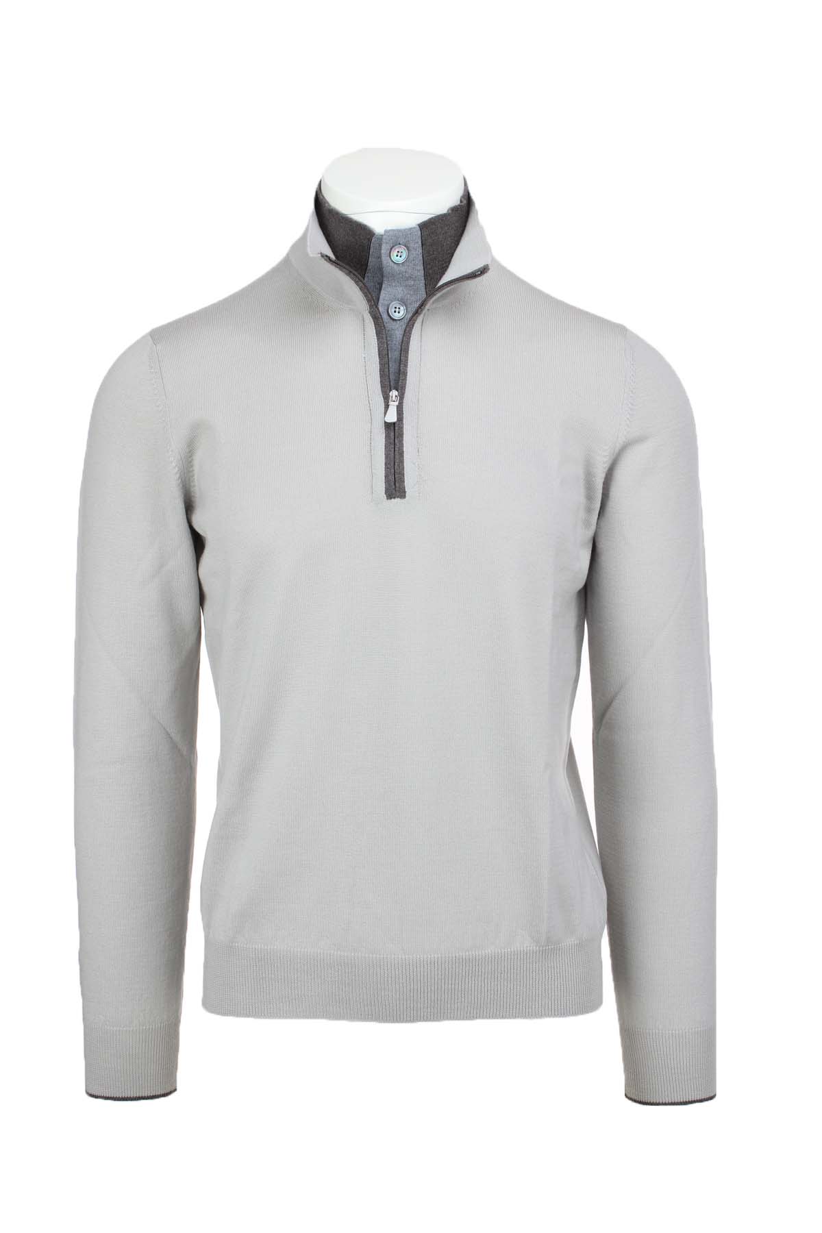 Un capo classico GranSasso rivisitato con vestibilità e dettagli innovativi la maglia lupo zip e sottocollo bottoni, bordi in contrasto, polsini e fondo vita in costina elasticizzata, filato medio ideale anche come sottogiacca, vestibilità regolare, 100% lana vergine.