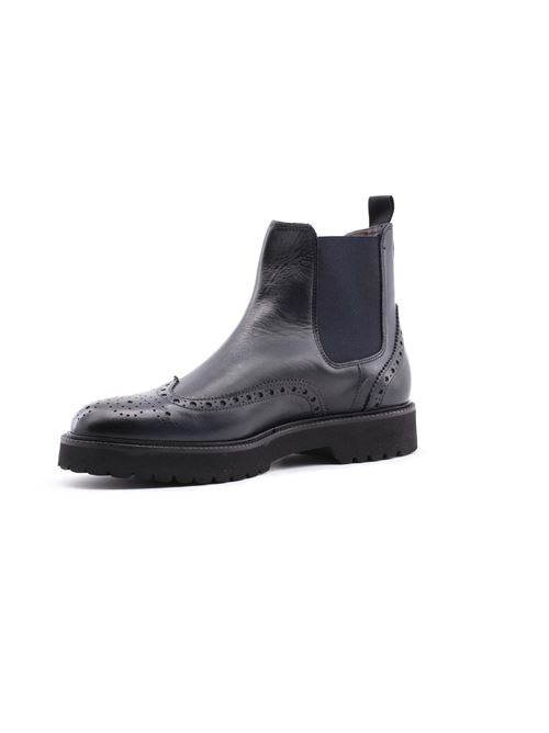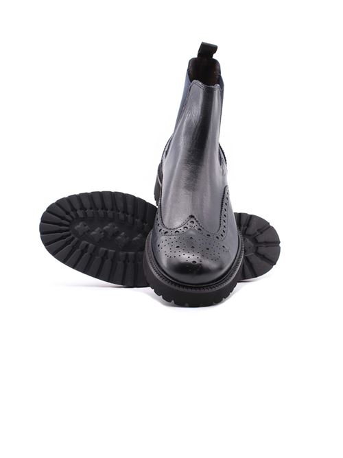 Stivaletto Beatles in pelle lavorata con microfori disegno a coda di rondine, elastici laterali per una perfetta calzata, suola in gomma disegno carro armato, interno foderato in pelle, calzata regolare, 100% pelle.