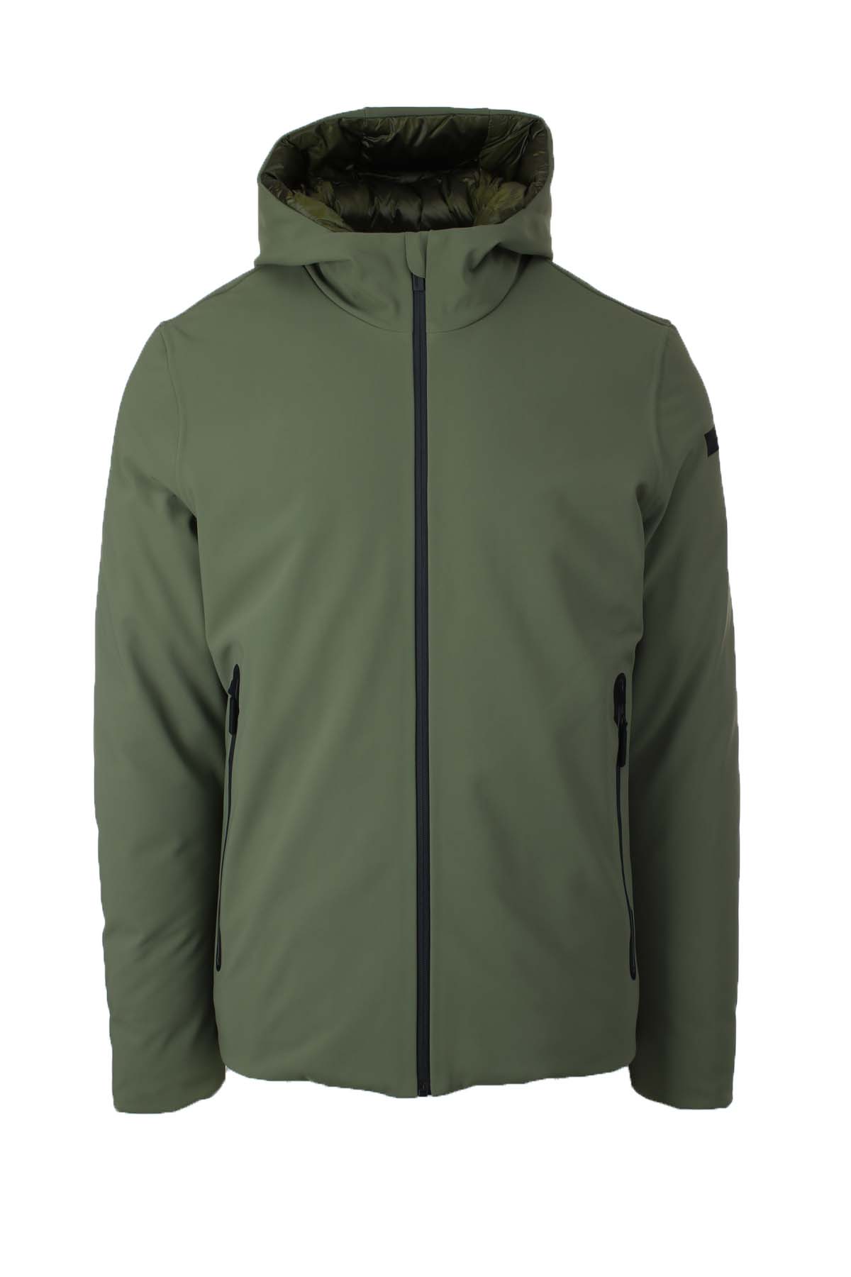 Giubbotto corto uomo RRD, chiusura centrale con zip doppio cursore, tasche anteriori termosaldate con zip, cappuccio fisso, interno foderato in nylon trapuntato e imbottito in piuma con tasche, tessuto esterno progettato utilizzando il metodo esclusivo RRD Holystic Technology 3 che garantisce funzionalità, stile e unicità del prodotto grazie a tre componenti che, uniti insieme garantiscono impermeabilità, traspirabilità, termicità e grande vestibilità.