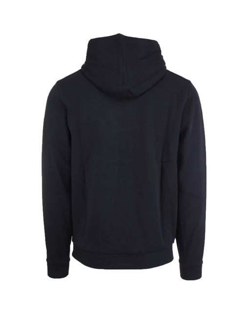 Felpa uomo con cappuccio, realizzata in felpa stretch caratterizzata da logo sovrimpresso lucido sul petto, polsini e fonfo vita im maglina elastica, tasche ai fianchi con zip, vestibilità regolare, 78% cotone, 16% poliestere, 6% elastan.