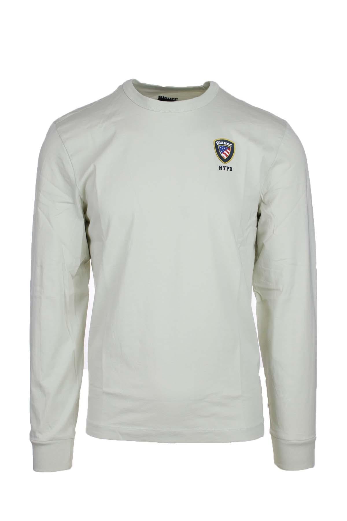 Tshirt manica lunga con scudetto gommato Blauer, realizzata in jersey di cotone, polsini elasticizzati, fondo a scatola, vestibilità regolare, 100% cotone.
