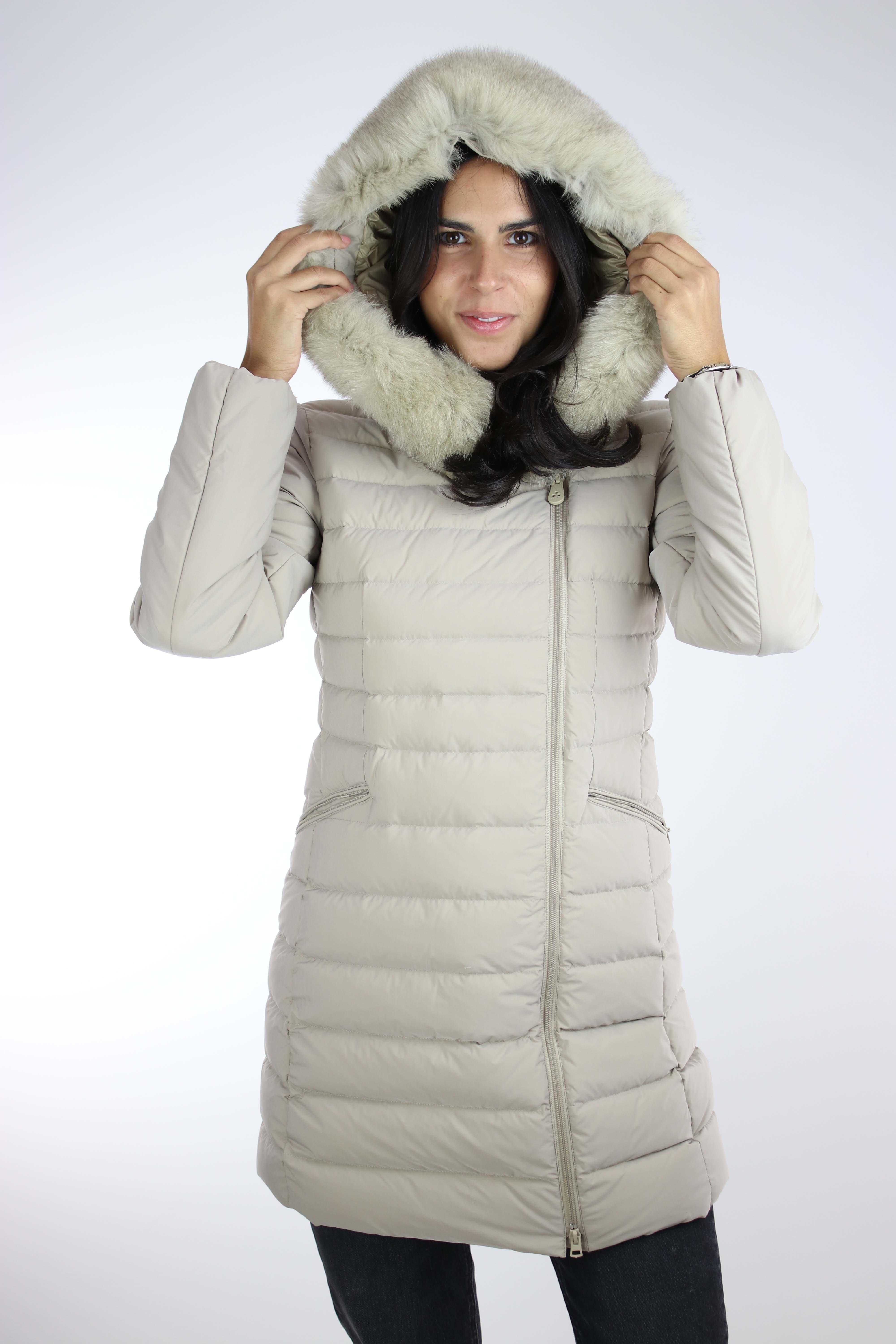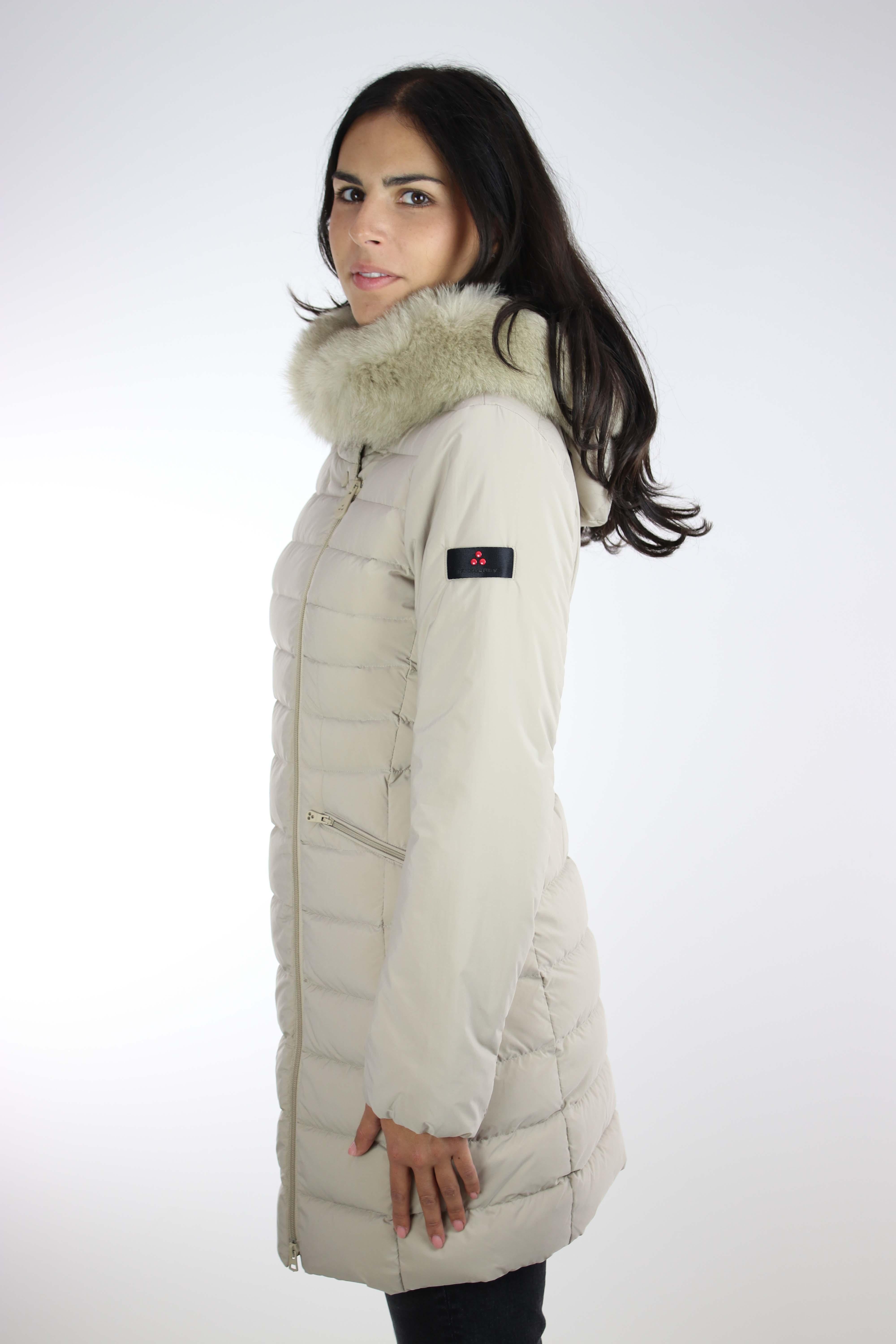Piumino lungo Peuterey in tessuto tecnico leggero con pelliccia di volpe staccabile. Vestibilità slim, sottolineata dalla coulisse posteriore in vita e dall'alternanza di trapuntate più e meno sottili, valorizza la silhouette e dona una connotazione femminile al capo. Chiusura con zip asimmetrica a doppio cursore, tasche con zip, inserti elastici antivento ai polsi. Logo Peuterey sul braccio. Un capo facile da abbinare a look diversi, al passo con uno stile di vita dinamico!