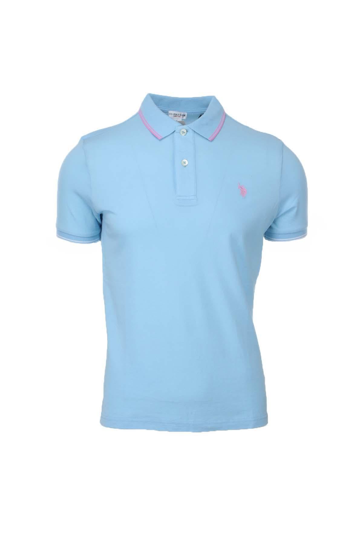 Polo mezza manica uomo in piquet di cotone unito con profili maniche e collo colorati, logo US Polo sul petto, collo a due bottoni, fondo con spacchetti, profili colorati, vestibilità regular, acquista la tua solita taglia, 100% cotone piquet.